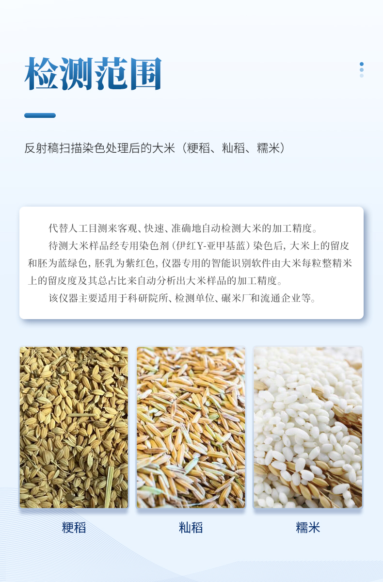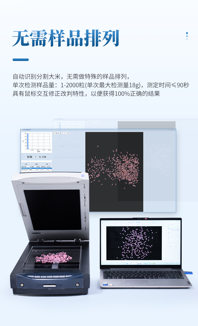 大米加工精度檢測儀是一款專門用于自動檢測大米加工精度的設備,旨在替代傳統的人工目測,提供更客觀、快速、準確的檢測結果。以···