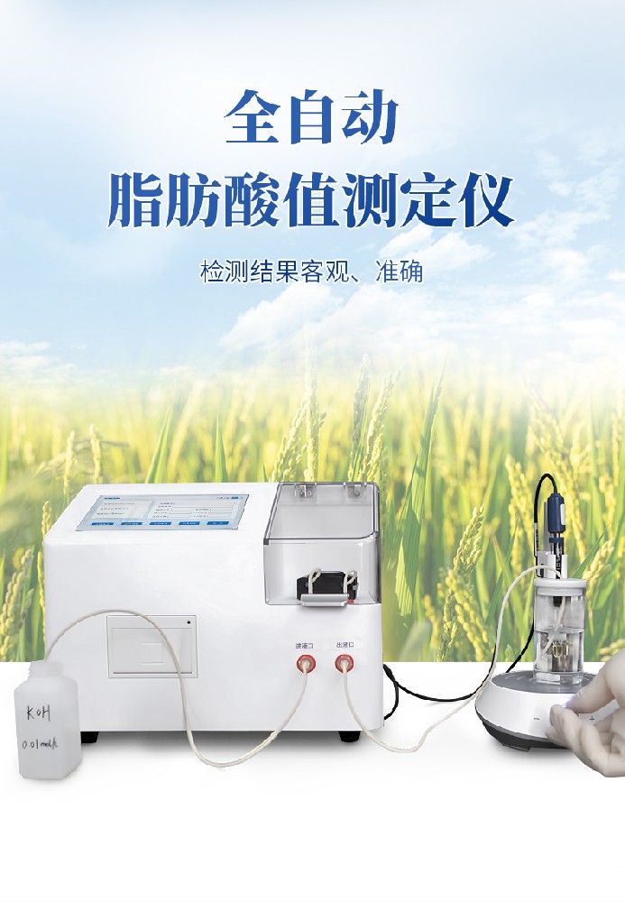 全自動脂肪酸值測定儀是針對脂肪酸值作為判斷儲糧品質劣變的重要儀器設備,是一種以電極電位突躍作為指示終點為控制依據的自動滴定裝置。主要用于測定稻谷、糙米、大米等糧食作物的脂肪酸值,是一種專用檢測設備。本儀器實現了滴定終點判定、計量、數據處理、測定結果顯示及打印功能自動化,提高了檢測結果的客觀性及準確性,具有操作簡單、使用方便的特點。